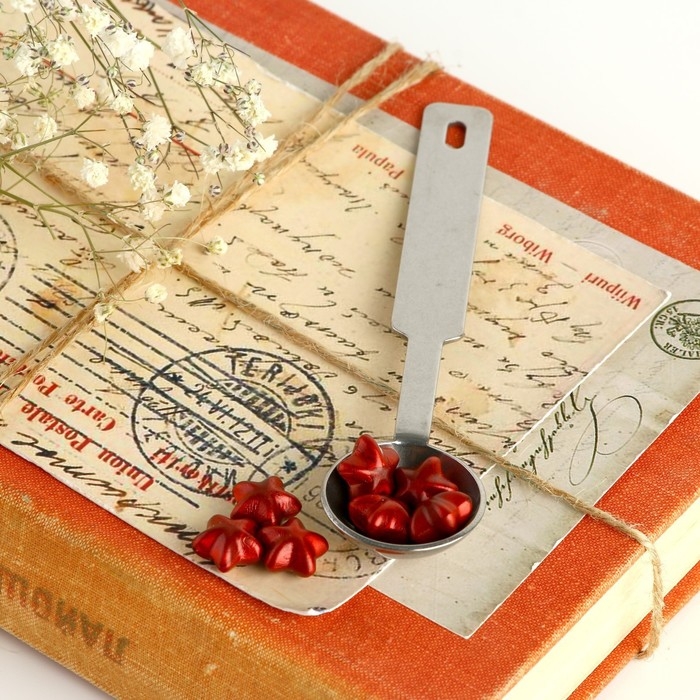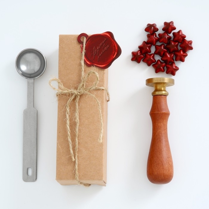 Состав набора: Ложка для плавления сургуча Сургуч в гранулах Штамп с деревянной ручкой