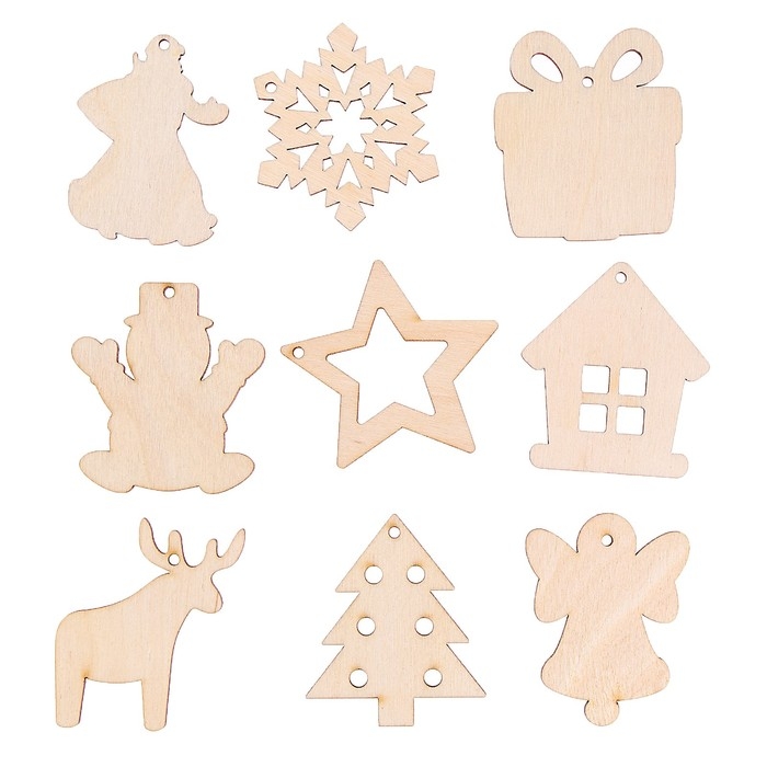 Модель из дерева «Подвески. Украшаем ёлочку» 5 подвесок в наборе