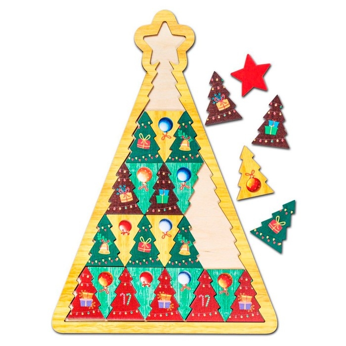 - Задача ребёнка — сложить большую ёлочку из маленьких.