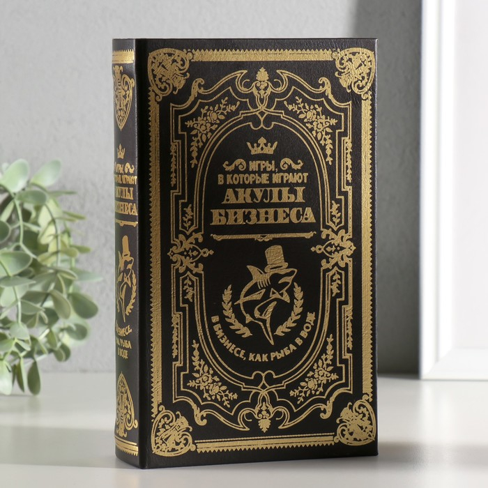 Шкатулка-сейф кожа "Акулы бизнеса" 21х13х5 см