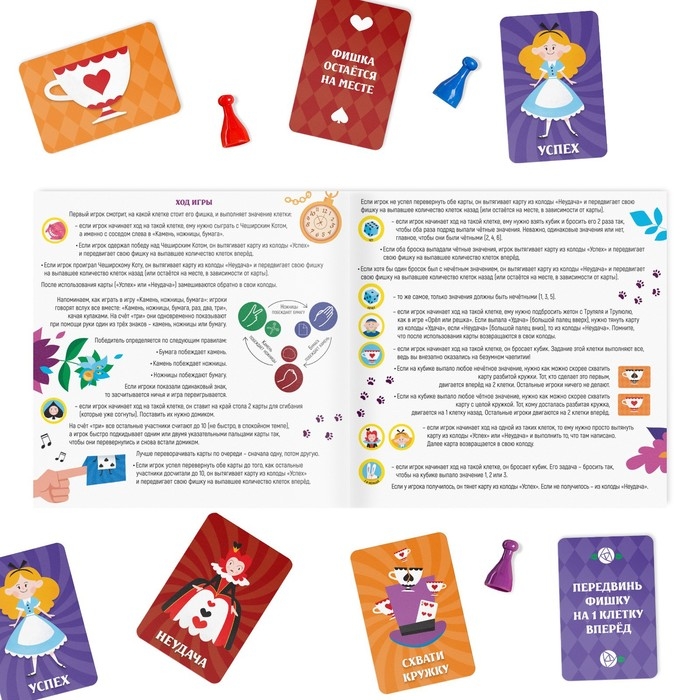Настольная игра-бродилка «Безумное приключение» — это увлекательный досуг для всех членов семьи, который поможет погрузиться в любимое произведение Льюиса Кэрролла!