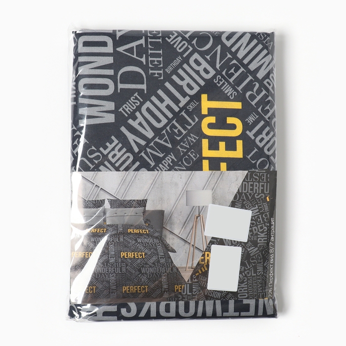 Постельное бельё 1,5 сп Перфект, антрацит, 150х210 см, 150х210 см, 70х70 см, бязь, 105 г/м, 100% хлопок