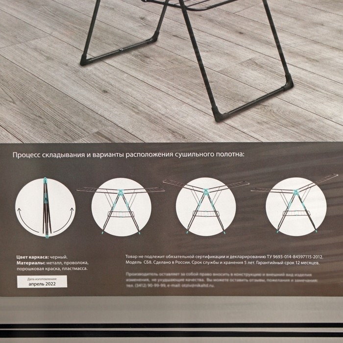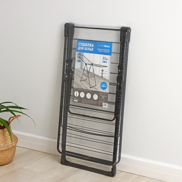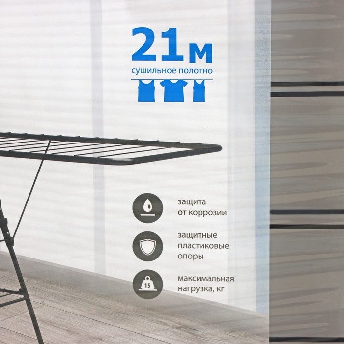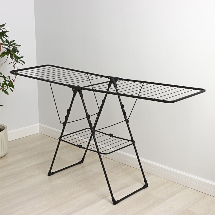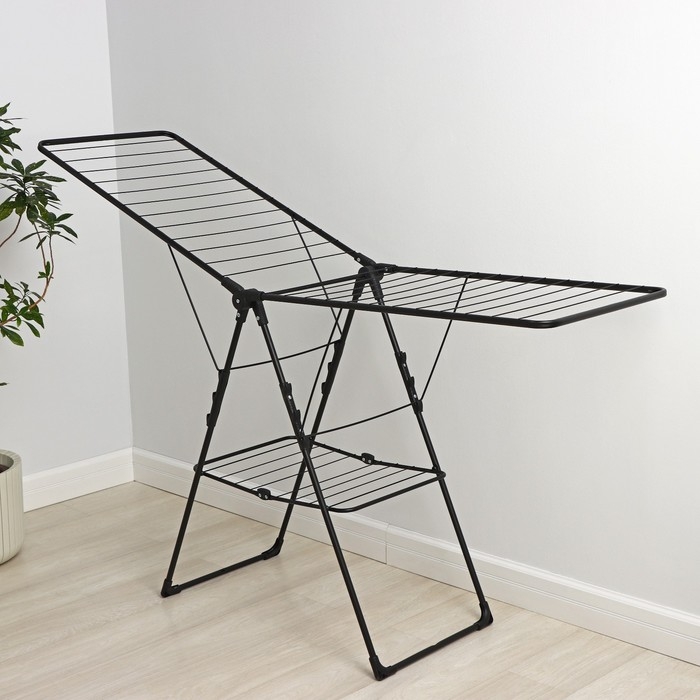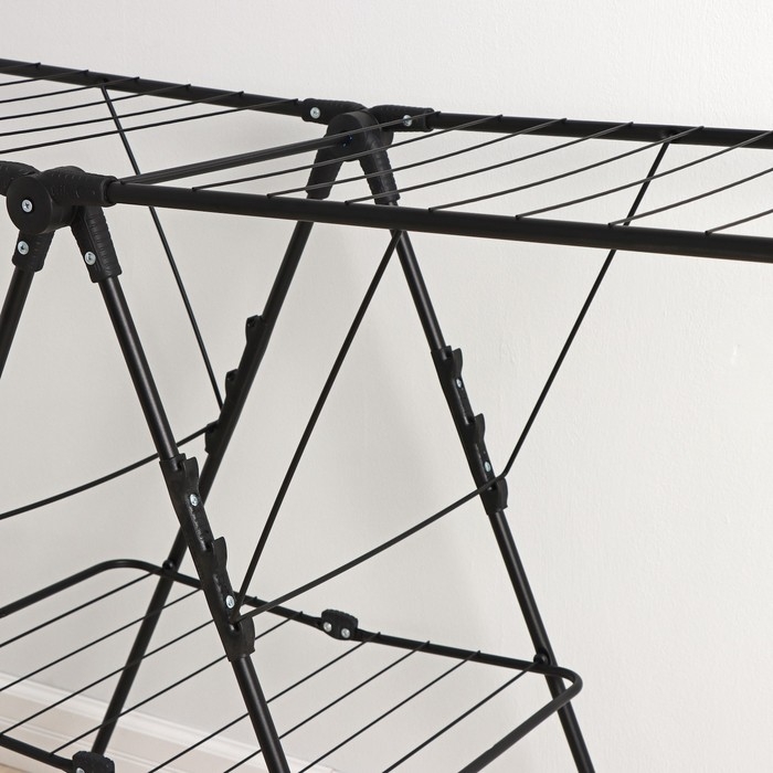 Сушилка для белья напольная двухуровневая, рабочая длина 21 м, цвет чёрный