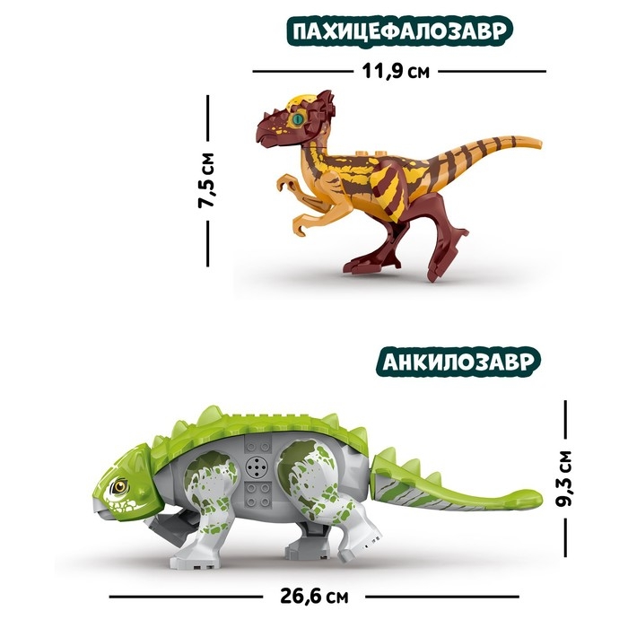 Конструктор «Диномир», пахицефалозавр и анкилозавр, звуковые эффекты, 22 детали