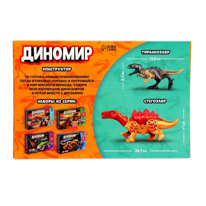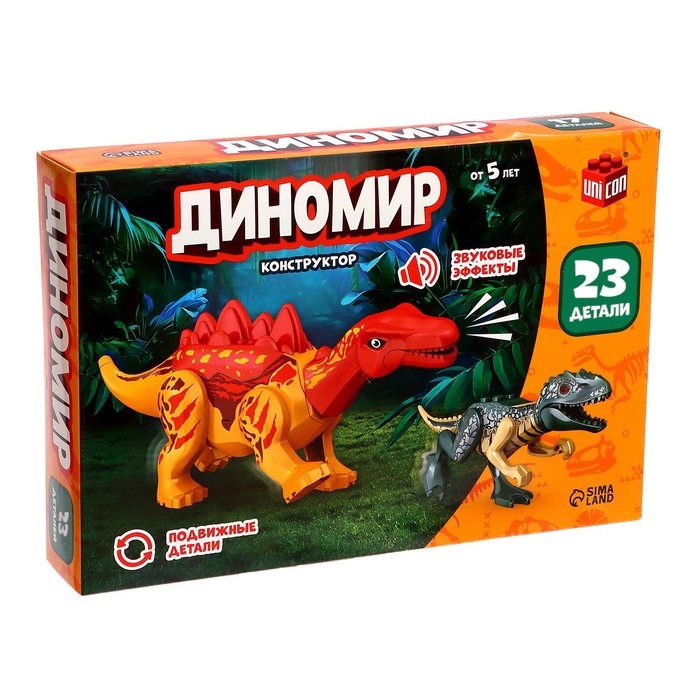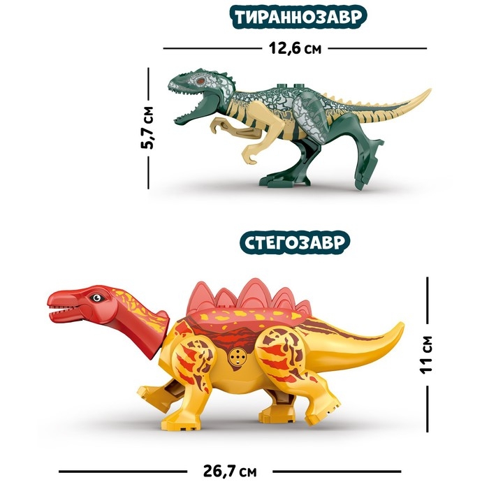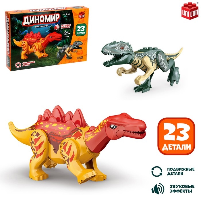 Конструктор «Диномир», 23 детали, тираннозавр и стегозавр, звук
