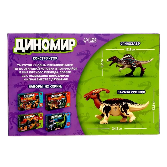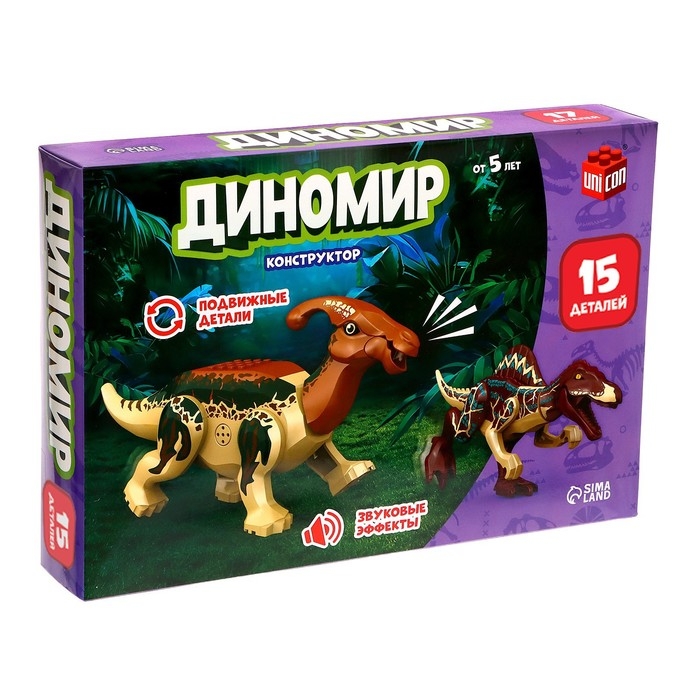 Конструктор «Диномир», 15 деталей, спинозавр и паразауролоф, звук