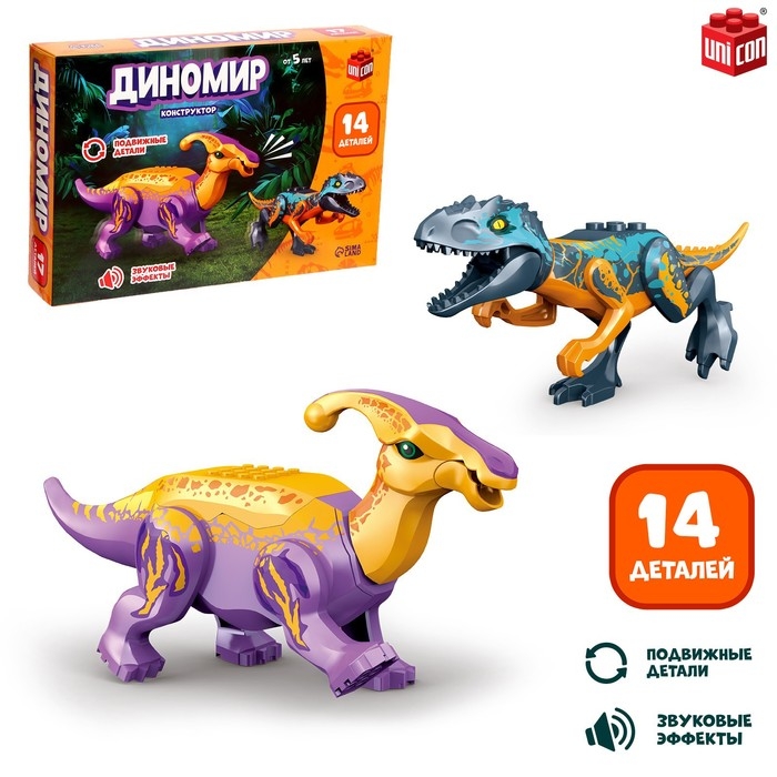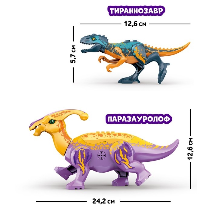 Конструктор «Диномир», 14 деталей, тираннозавр и паразауролоф, звук