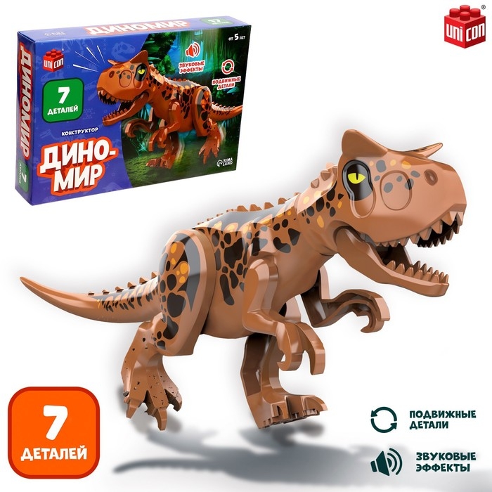Конструктор «Диномир», 7 деталей, аллозавр, звук