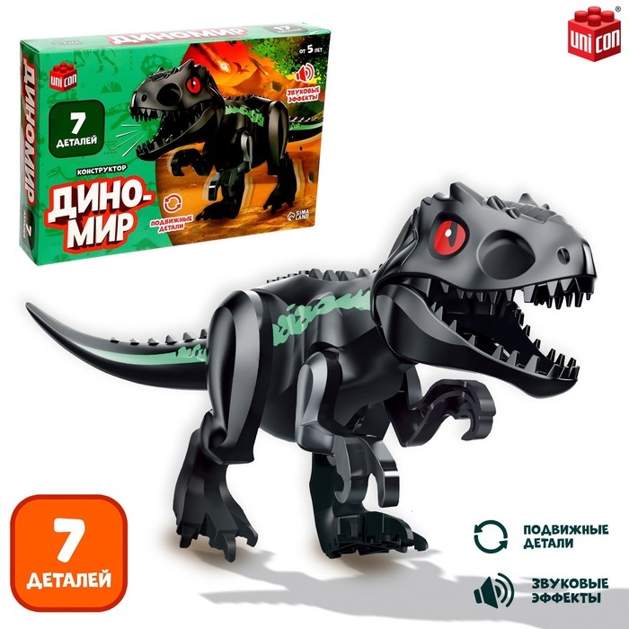 Конструктор «Диномир», 7 деталей, тираннозавр, звук