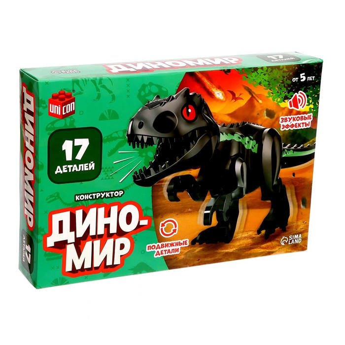 С конструктором «Диномир» ребёнок соберёт подвижную модель динозавра со звуковыми эффектами и окунётся в захватывающий мир доисторических гигантов!