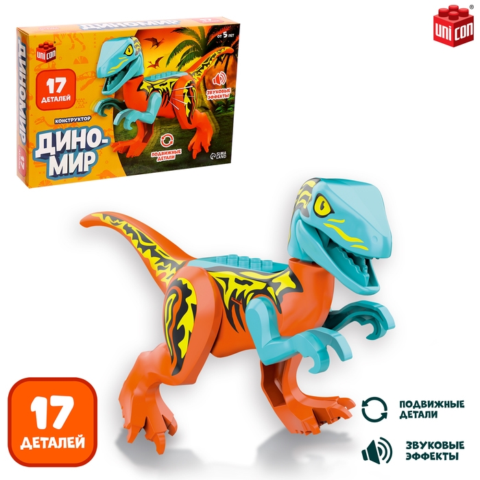 С конструктором «Диномир» ребёнок соберёт подвижную модель динозавра со звуковыми эффектами и окунётся в захватывающий мир доисторических гигантов!