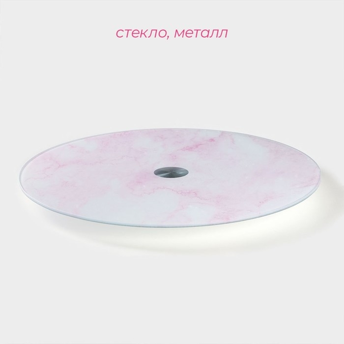 Подставка стеклянная для торта вращающаяся Доляна «Марбл розовый», d=32 см, цвет розовый
