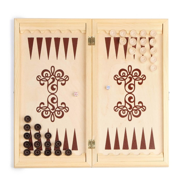Нарды деревянные большие, настольная игра "Узор", 40 х 40 см, с полем для игры в шашки