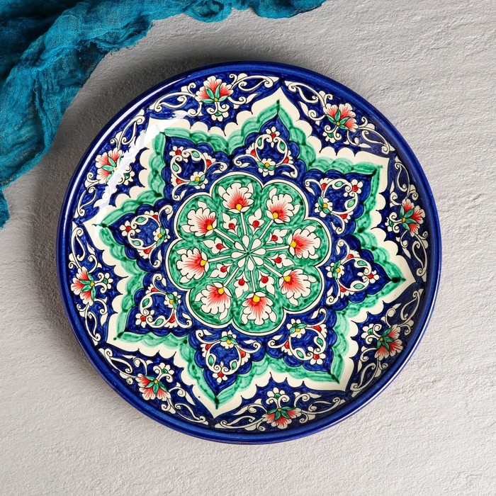Ляган Риштанская Керамика "Узоры", 36 см, синий