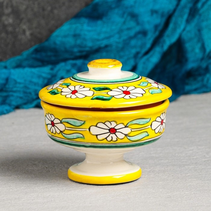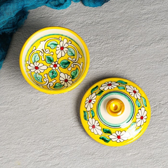 Сахарница Риштанская Керамика "Узоры", 250 мл, желтая