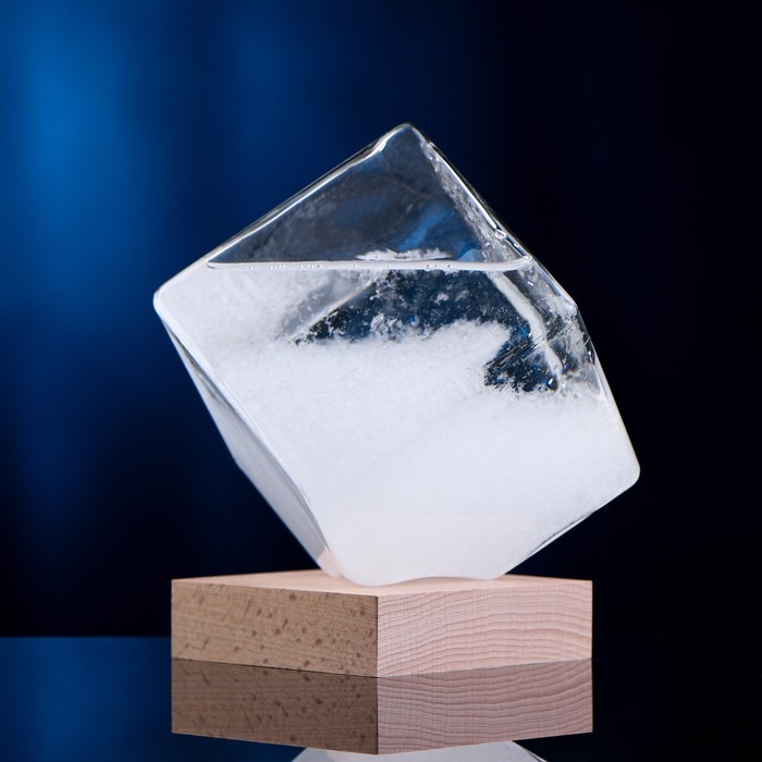 Штормгласс - это химический метеорологический прибор из стеклянной колбы, заполненной спиртовым раствором, в котором в определённых пропорциях растворены камфора, нашатырь и калийная селитра.