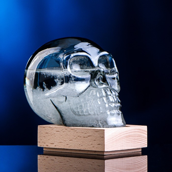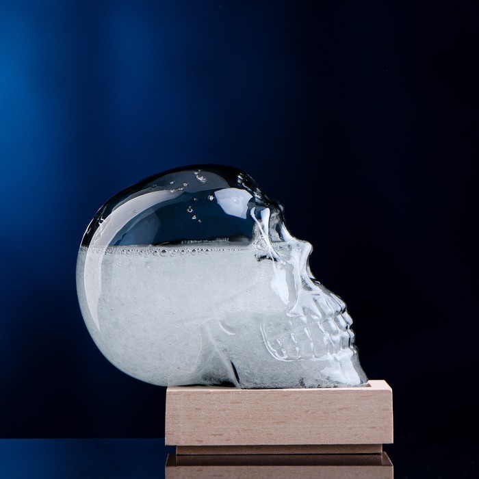 Штормгласс - это химический метеорологический прибор из стеклянной колбы, заполненной спиртовым раствором, в котором в определённых пропорциях растворены камфора, нашатырь и калийная селитра.