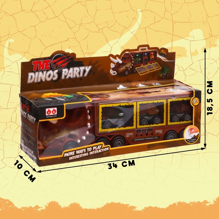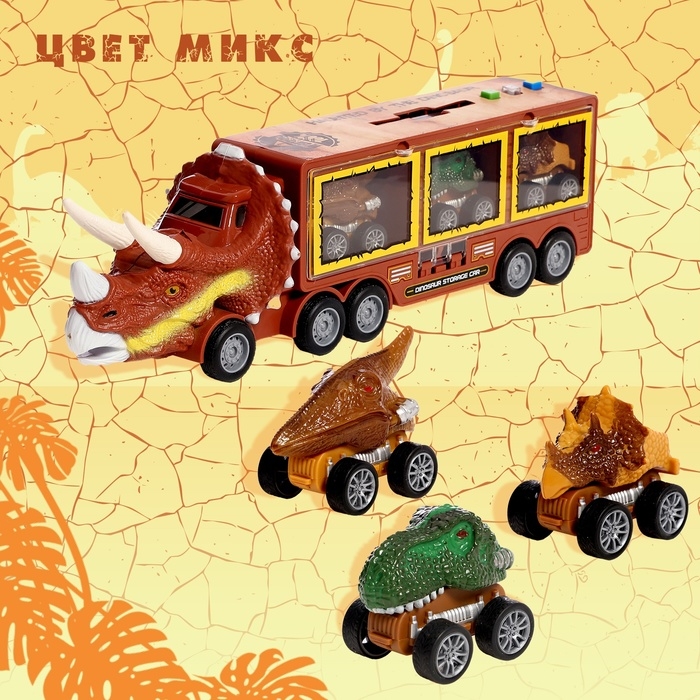 Грузовик инерционный «Динозавр», с 3 машинами, световые и звуковые эффекты