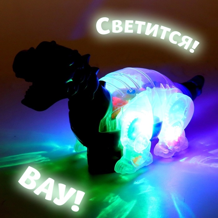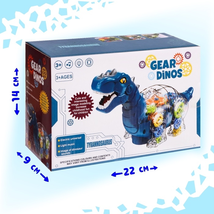 Динозавр «Шестерёнки», свет и звук, работает от батареек, цвет синий