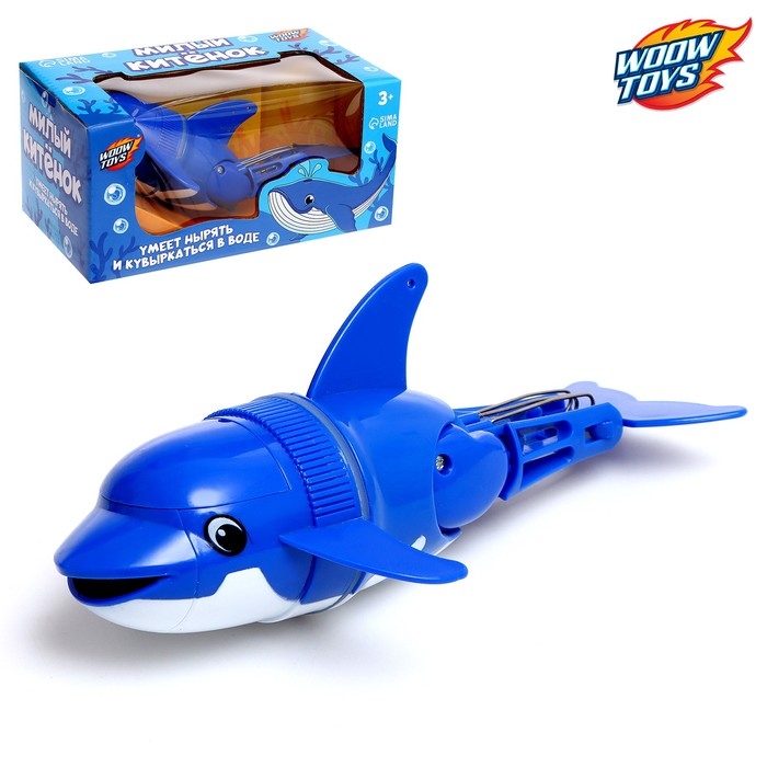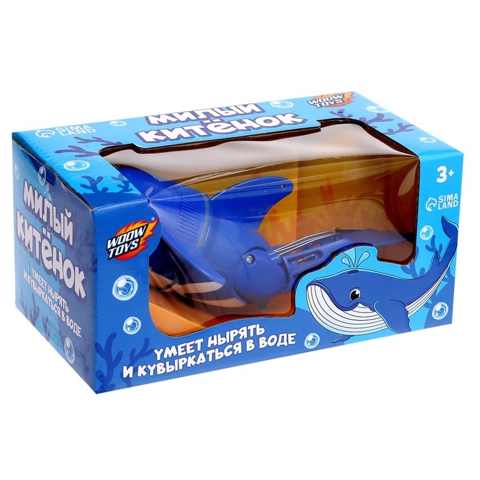 Милый китёнок, плавает в воде, работает от батареек, цвет синий