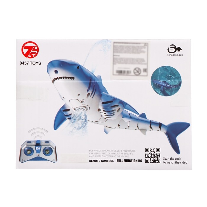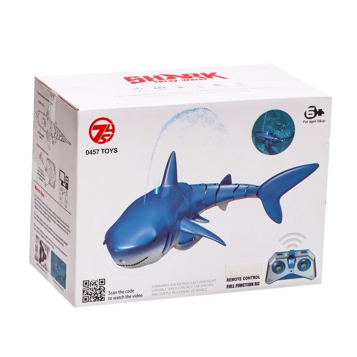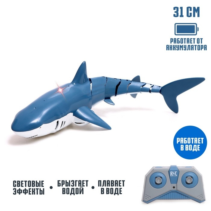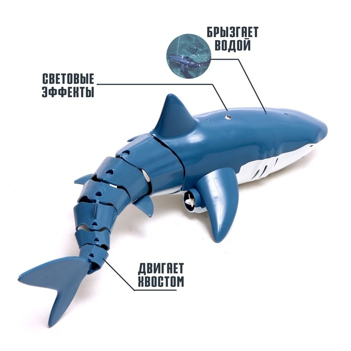 Акула радиоуправляемая «Белая», плавает, брызгает водой, работает от аккумулятора, цвет синий