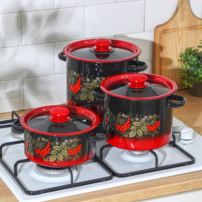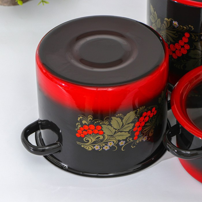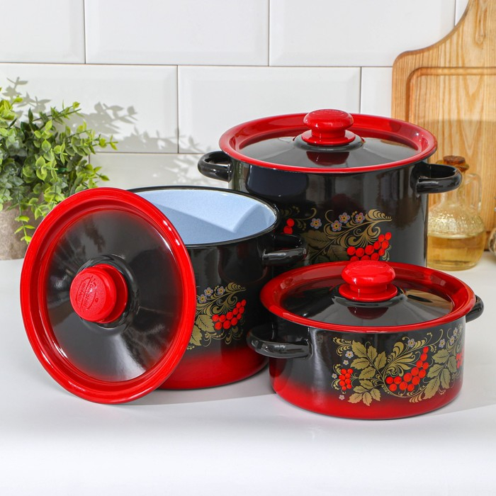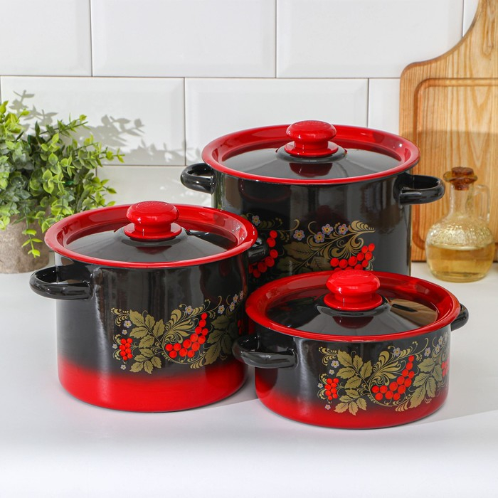 Набор кастрюль «Рябинка», 3 предмета: 2 л, 3.5 л, 5.5 л, эмалированные крышки, индукция