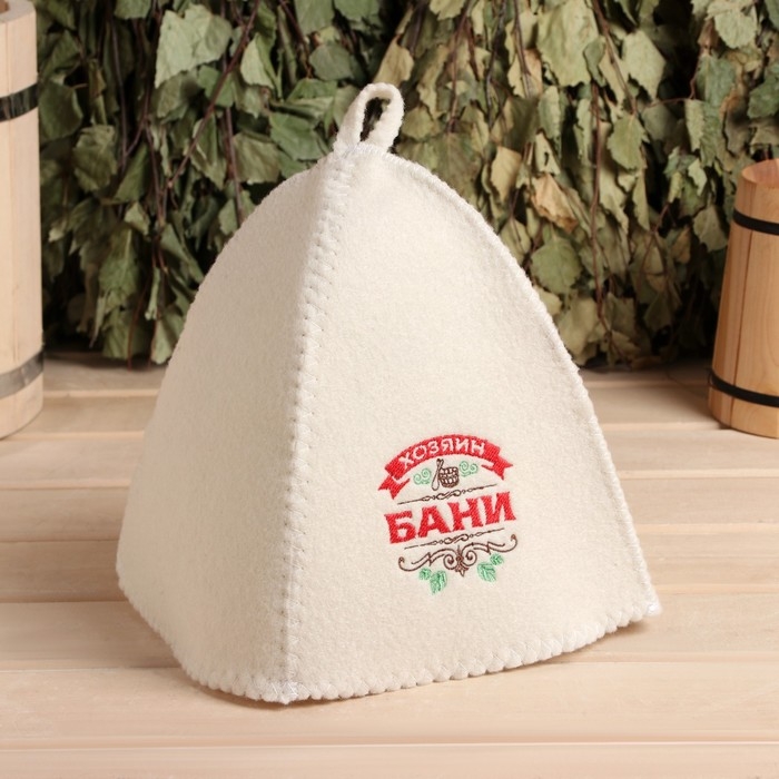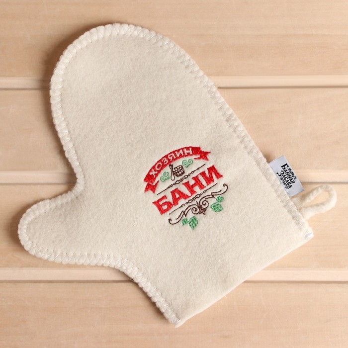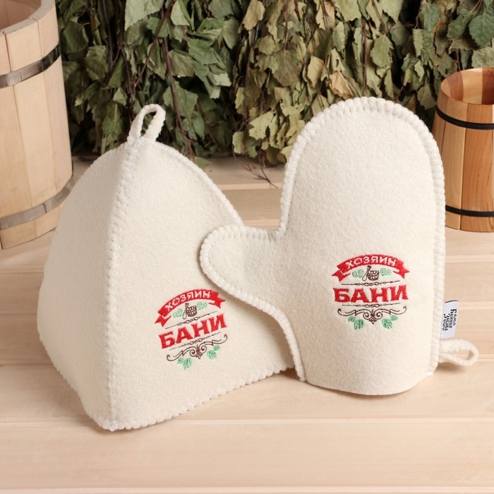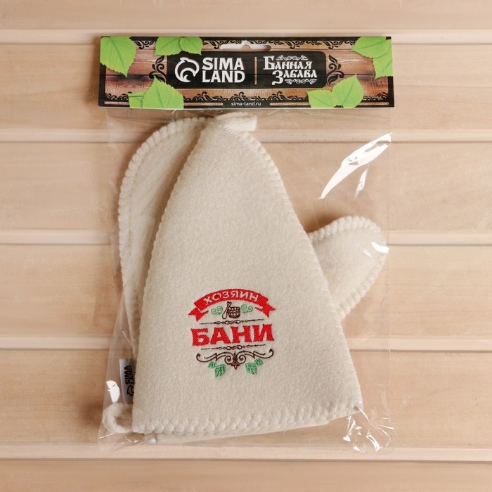 Набор для бани "Хозяин бани" 2 предмета шапка, варежка с вышивкой