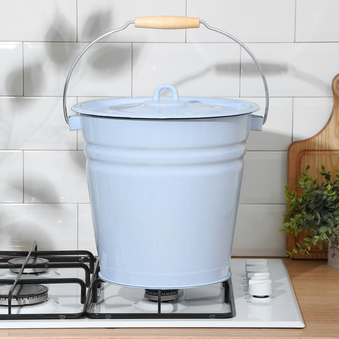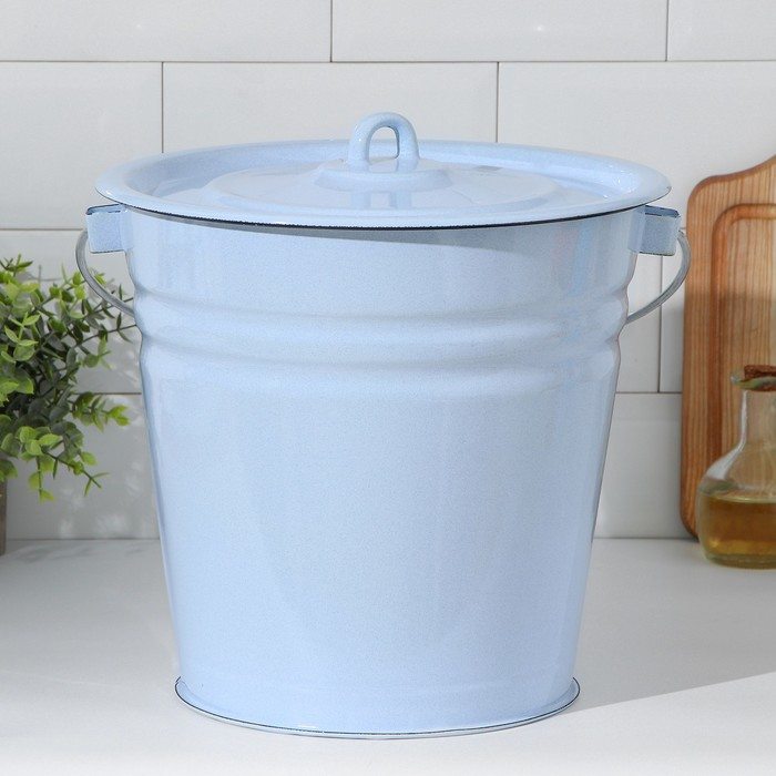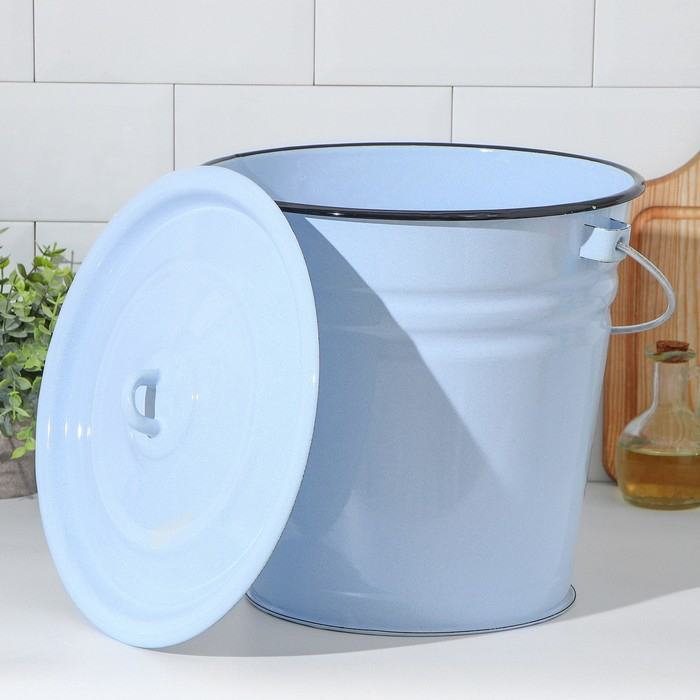 Ведро эмалированное, 12 л, с крышкой, цвет голубой