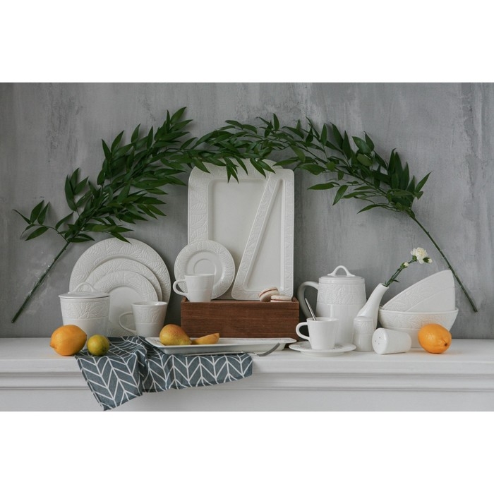 Посуда Magistro серии Сrotone – это безупречно изящная коллекция посуды из белоснежного фарфора, достойная украсить даже королевский стол. Традиционная форма изделий остается всегда актуальной и выглядит благородно. Рельефный узор в виде листьев выглядит особенно утончённо и придает посуде индивидуальности. Посуда Magistro Сrotone идеально впишется в любой современный интерьер!