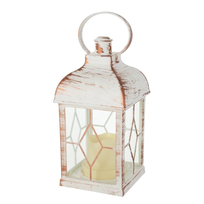 Ночник "Фонарь 2" LED от батареек 3хААА белый с золотой патиной 11х11х21,5 см