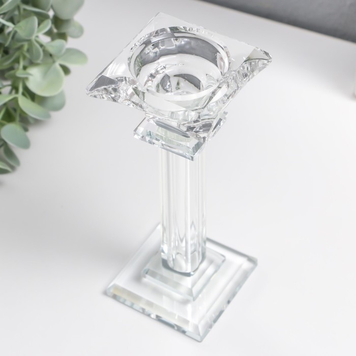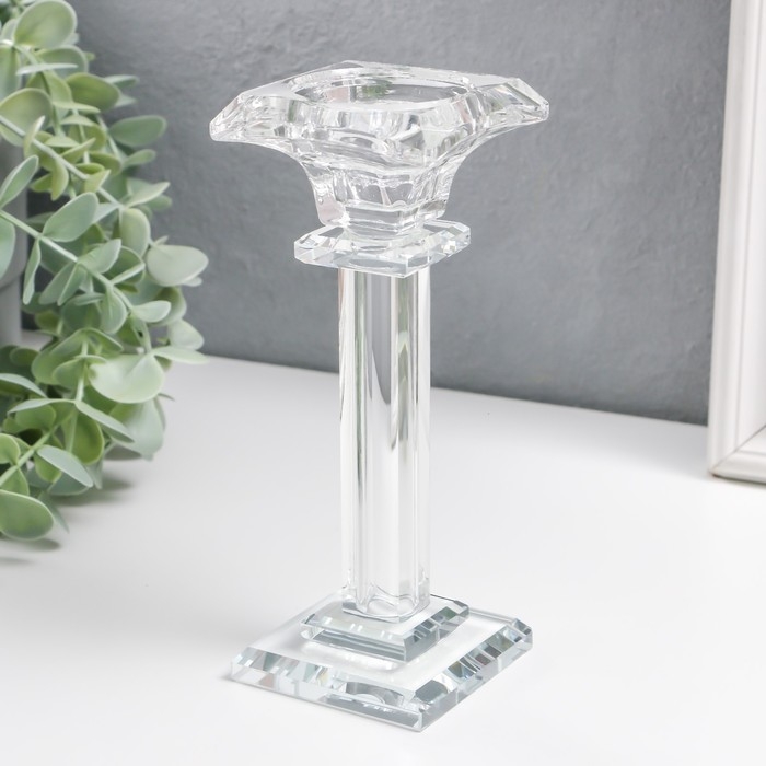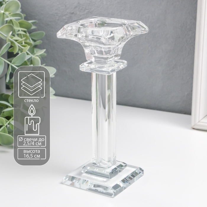 Подсвечник стекло на 1 свечу "Ампир" на ножке d=2,5 и 4 см 6,5х6,5х16,5 см
