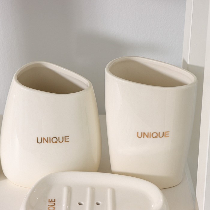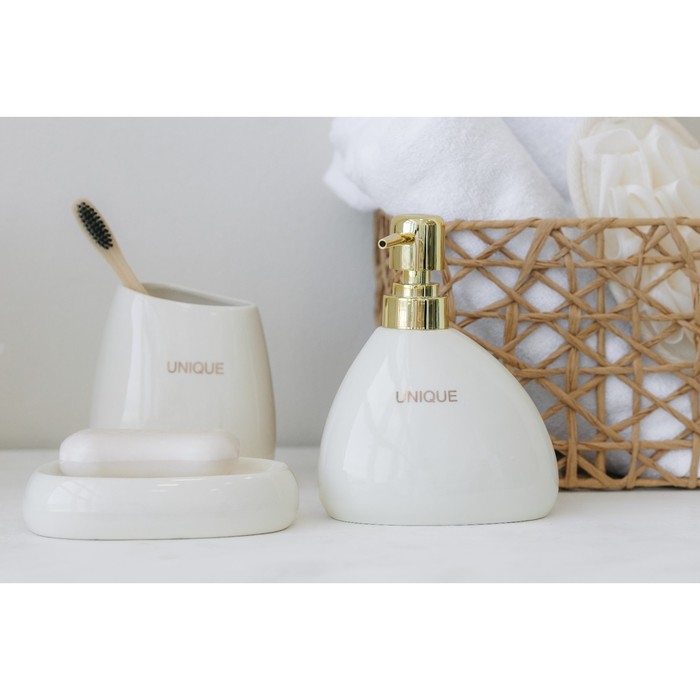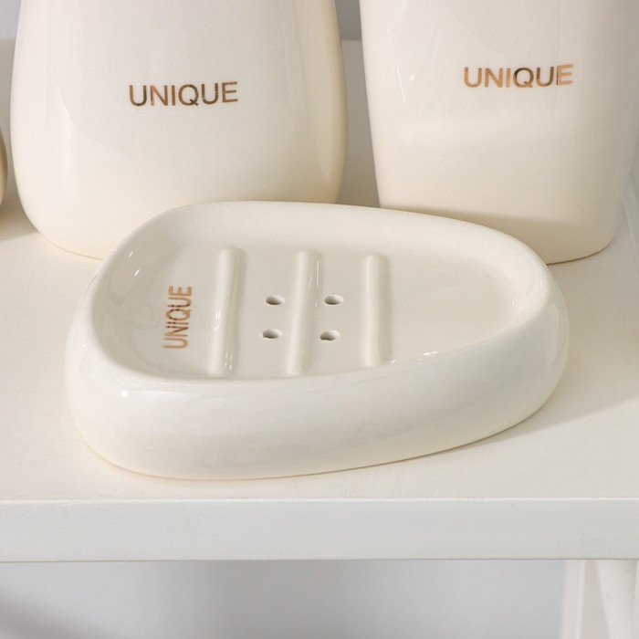 Набор аксессуаров для ванной комнаты SAVANNA Stone, 4 предмета (мыльница, дозатор для мыла, 2 стакана), цвет белый