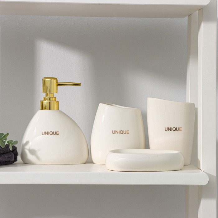 Набор аксессуаров для ванной комнаты Доляна «Изящество», 4 предмета (дозатор 250 мл, мыльница, 2 стакана), цвет белый