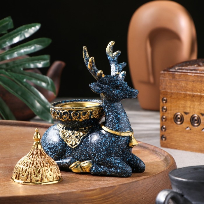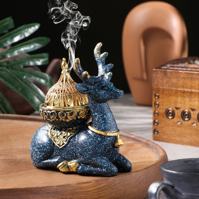 Курильница для благовоний порошковых и конусов "Олененок", голубой, 12,5х11,5 см