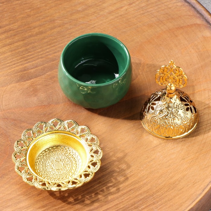 Курильница для благовоний порошковых и конусов "Мешочек", изумрудный, 10,5х6,9 см
