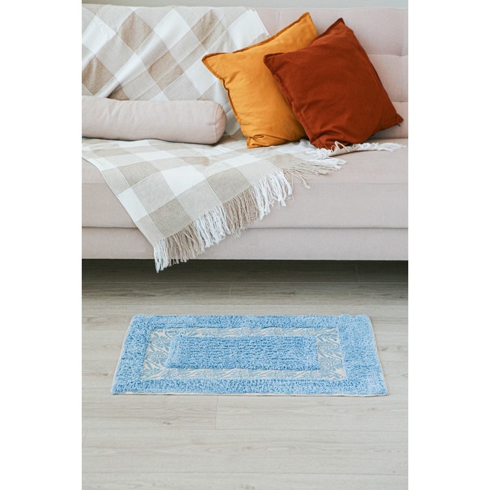Коврик для дома Доляна «Вензель», 50×80 см, цвет голубой
