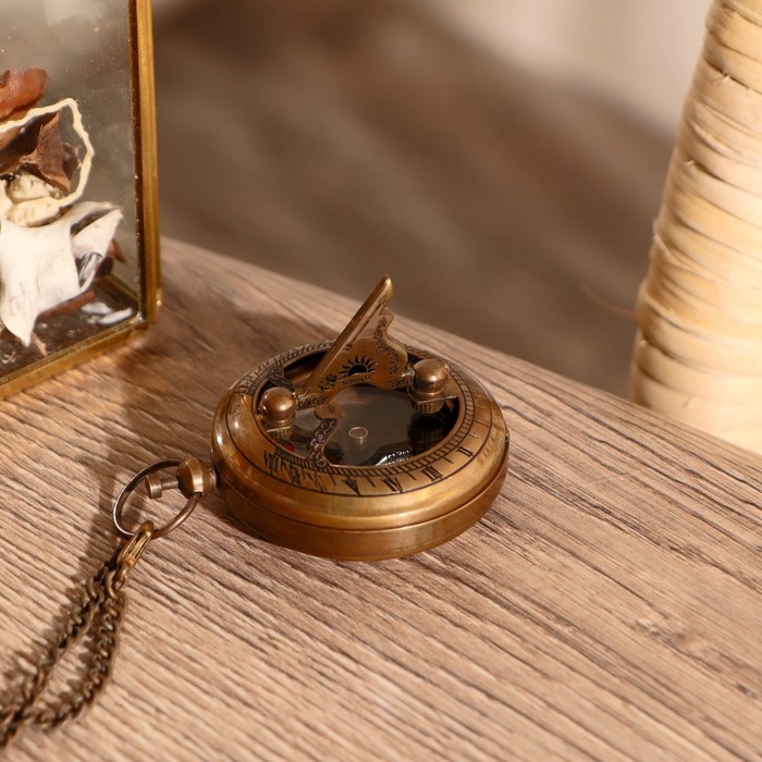 Компас с солнечными часами "Антик" латунь, на цепочке 5 см