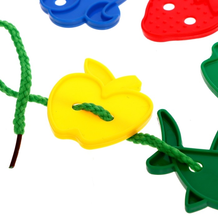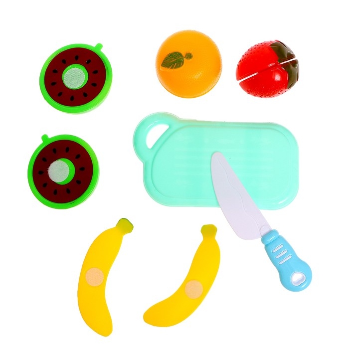 - Пластиковые фрукты. Плоды на липучках ребёнок сможет самостоятельно резать и познакомится с такими понятиями, как деление, половина и доля.