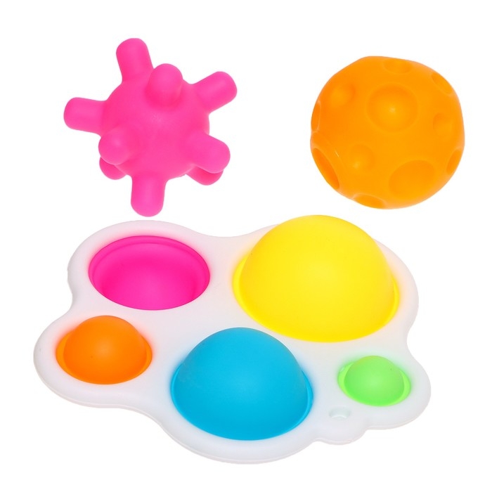 - Сенсорные игрушки. Благодаря ярким игрушкам ребёнок разовьёт мелкую моторику, внимание и цветовосприятие.