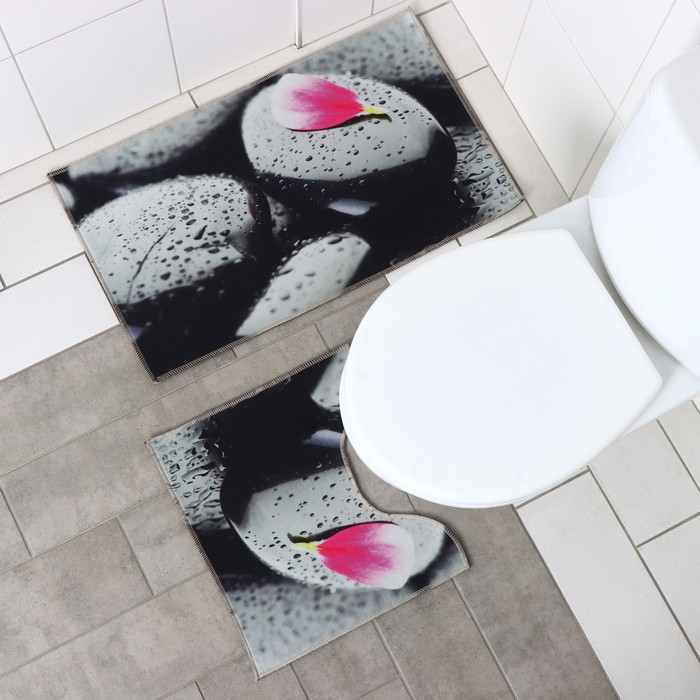 Коврики для ванной и туалета Доляна «Камни», 2 шт: 40×45 см, 45×75 см