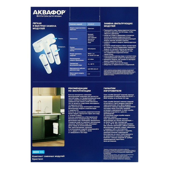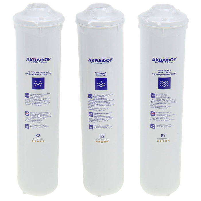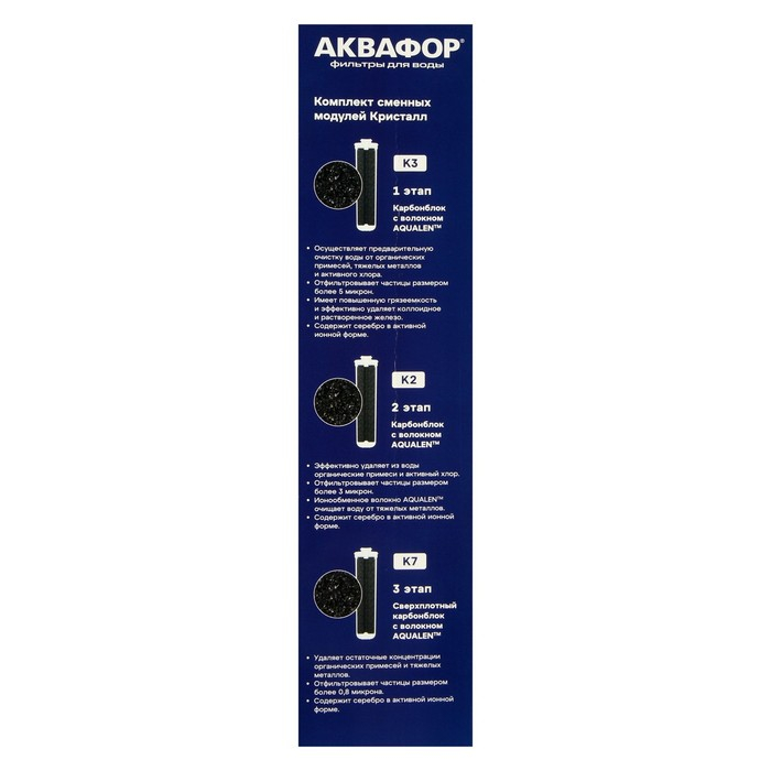 Комплект сменных картриджей для "Аквафор" Кристалл, К3-К2-К7, фильтрующий