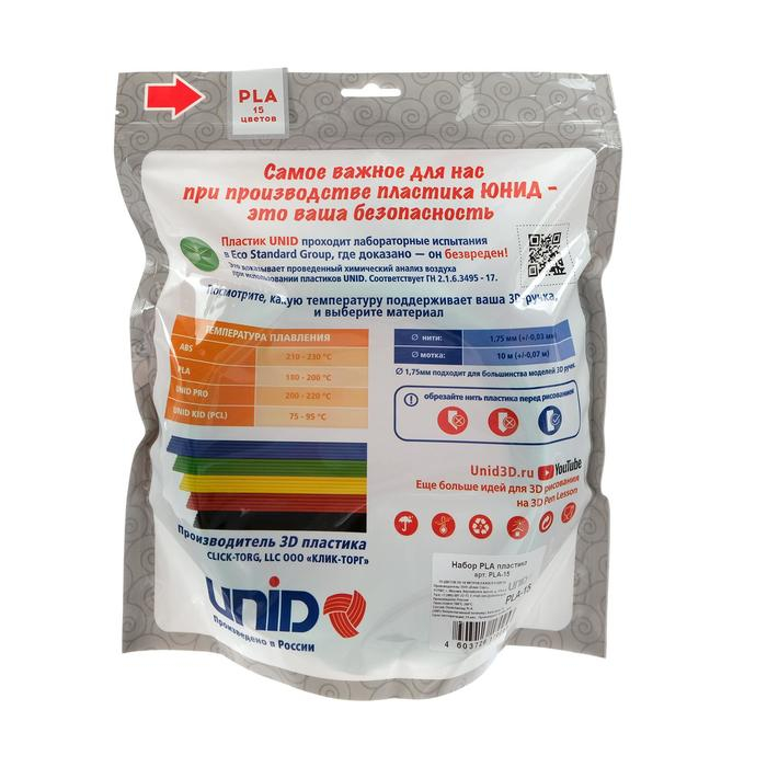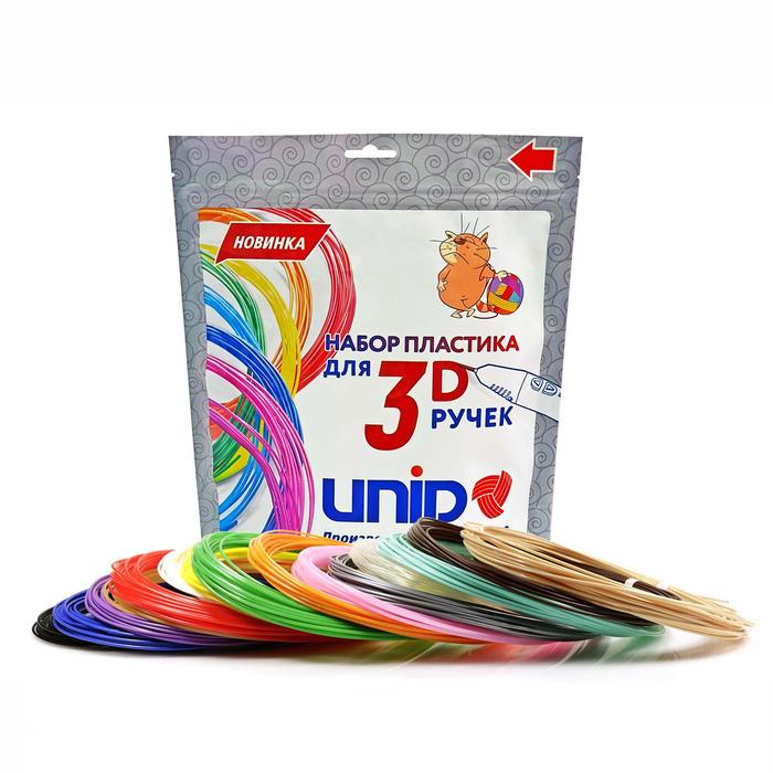 Пластик UNID PLA-15, для 3Д ручки, 15 цветов в наборе, по 10 метров
