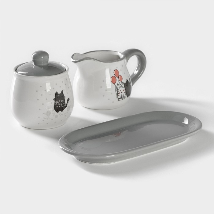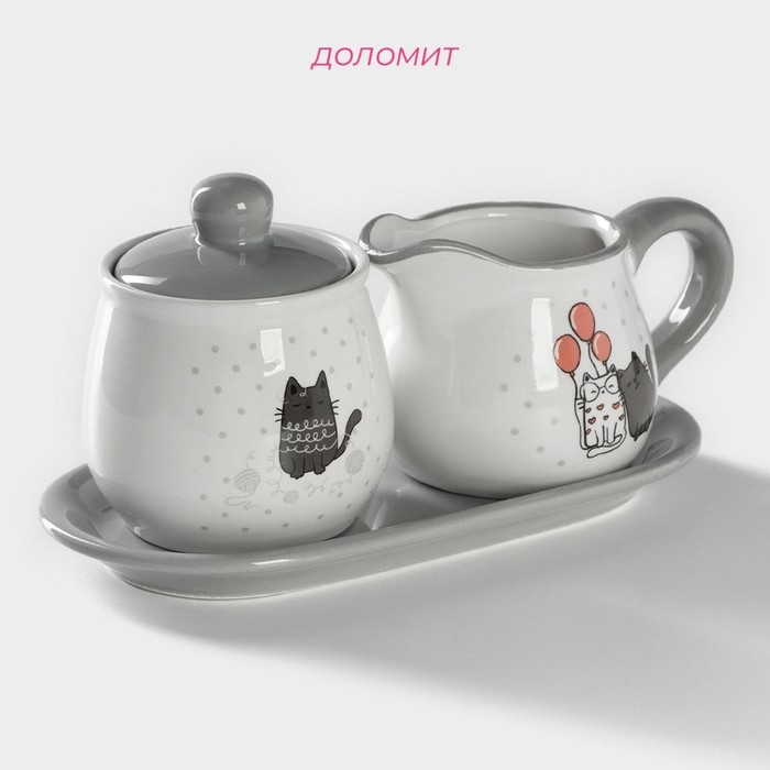 Набор сервировочный Доляна «Уютные коты», 2 предмета: молочник 270 мл, сахарница 310 мл