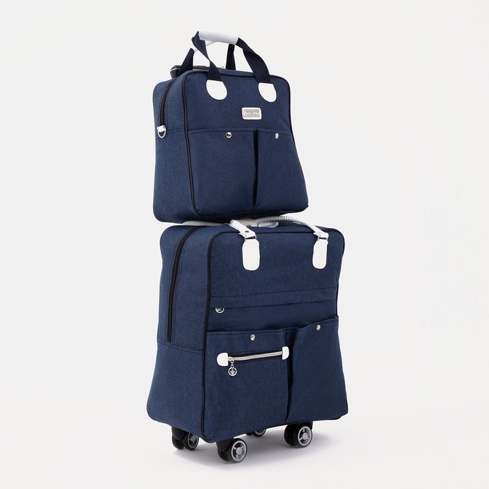 Сумка дорожная 2 в 1 на колёсах 20", отдел на молнии, 4 наружных кармана, цвет синий