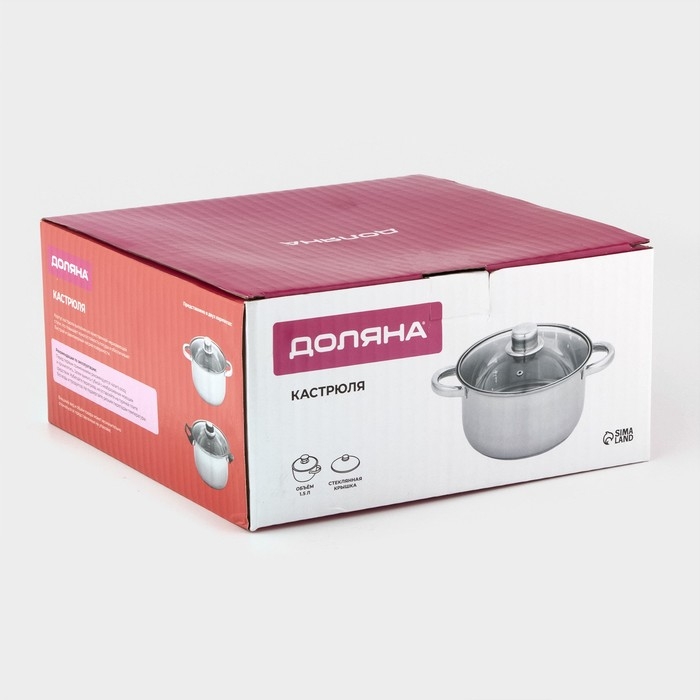 Кастрюля с крышкой из нержавеющей стали Доляна «Классика», 1,5 л, d=17,5 см, капульное дно