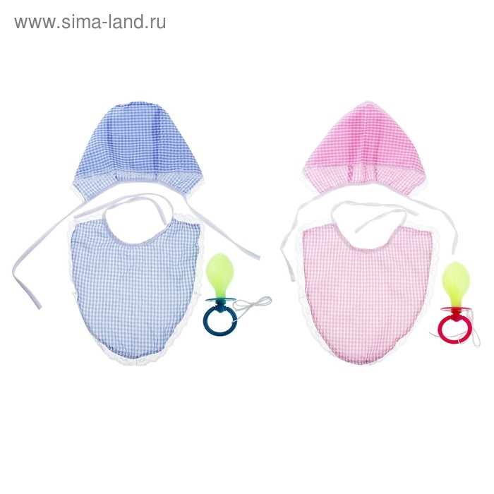 Прикол «Набор младенца», для взрослых, 3 предмета: слюнявчик, чепчик, соска, цвета МИКС