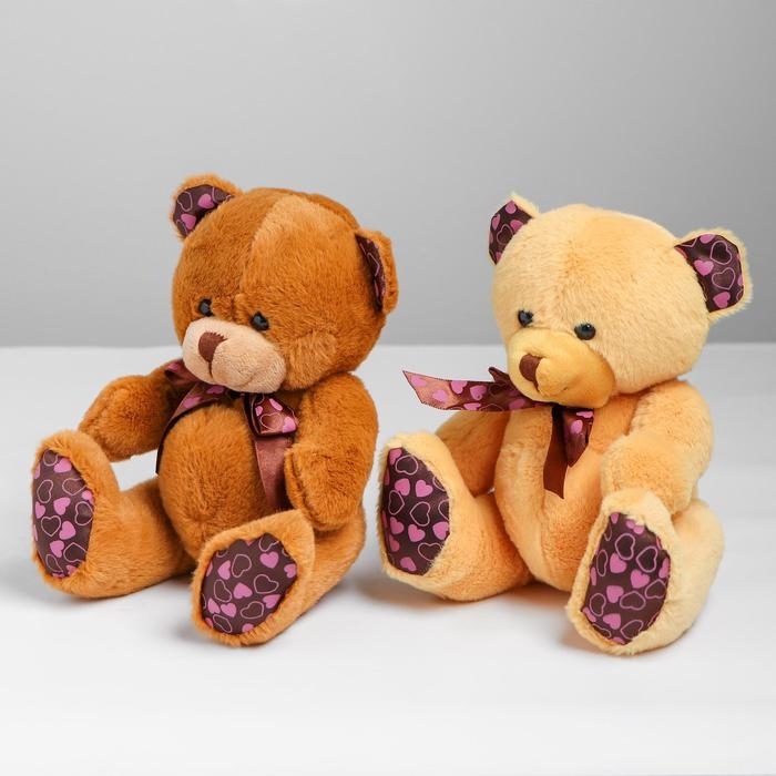 Мягкая игрушка «Мишка с бантом», на лапках и ушах сердечки, цвета МИКС