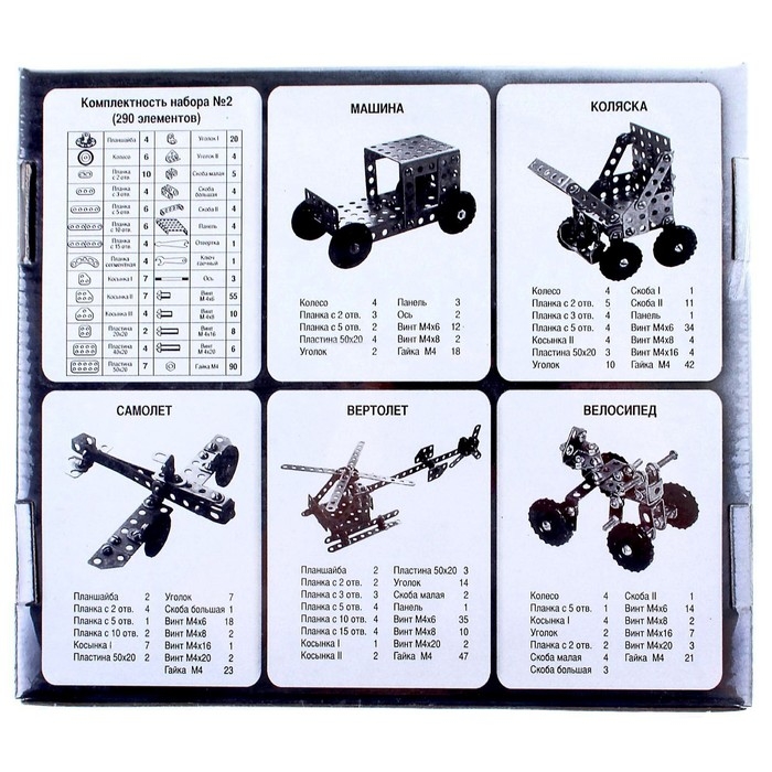 Конструктор металлический №2 для уроков труда, 290 деталей