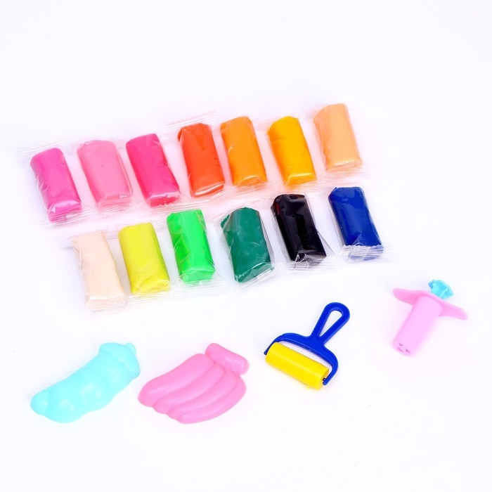 Тесто для лепки, 13 цветов, 200 г, 2 формочки, каток, шприц, цвета МИКС