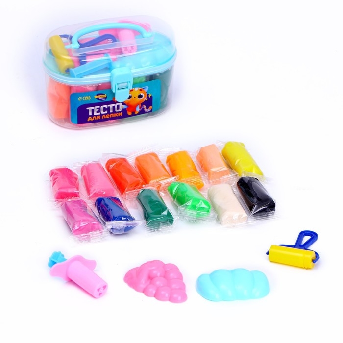Тесто для лепки, 14 цветов, 200 грамм, 2 формочки, каток, инструкция, цвета МИКС поможет развить воображение, эмоциональное, визуальное восприятие, мелкую моторику.